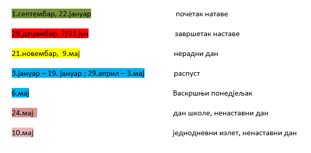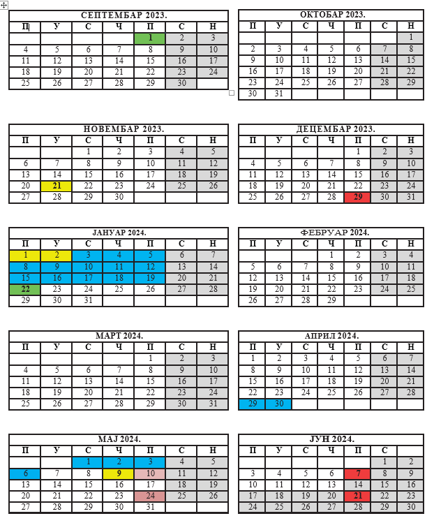 Календар васпитно-образовног рада за школску 2023/2024. годину